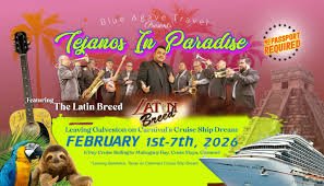 Blue Agave Travel presents the BIG Deal! Join us for the 13th Annual Tejanos In Paradise Cruise 2026 MAHOGANY BAY. Presenting another experience of a lifetime. Leaving Galveston, Texas on Carnival’s Cruise Ship Dream February 1st-7th, 2026. A 6 Day cruise headed to Mahogany Bay ,Costa Maya and Cozumel. Official Line-Up is as follows. Featuring The Latin Breed, Joe Posada, Jaime DeAnda, Chente Barrera, JR Gomez (MC), Max Baca, Roel Martinez, Jonny Martinez, Savannah Votion, Amanda Solis, Co-Host Bumper Gomez and DJ Tejano Man.